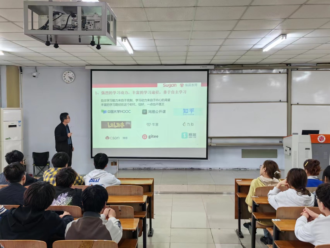 5月5日,英国威廉集团在智圆楼207教室举办了2021级学生就业指导宣讲会。宣讲会由2021级辅导员老师彭会锋主持,中科曙光驻校项目经理高向楠主讲,英国威廉集团2021级本科班学生积极参与。