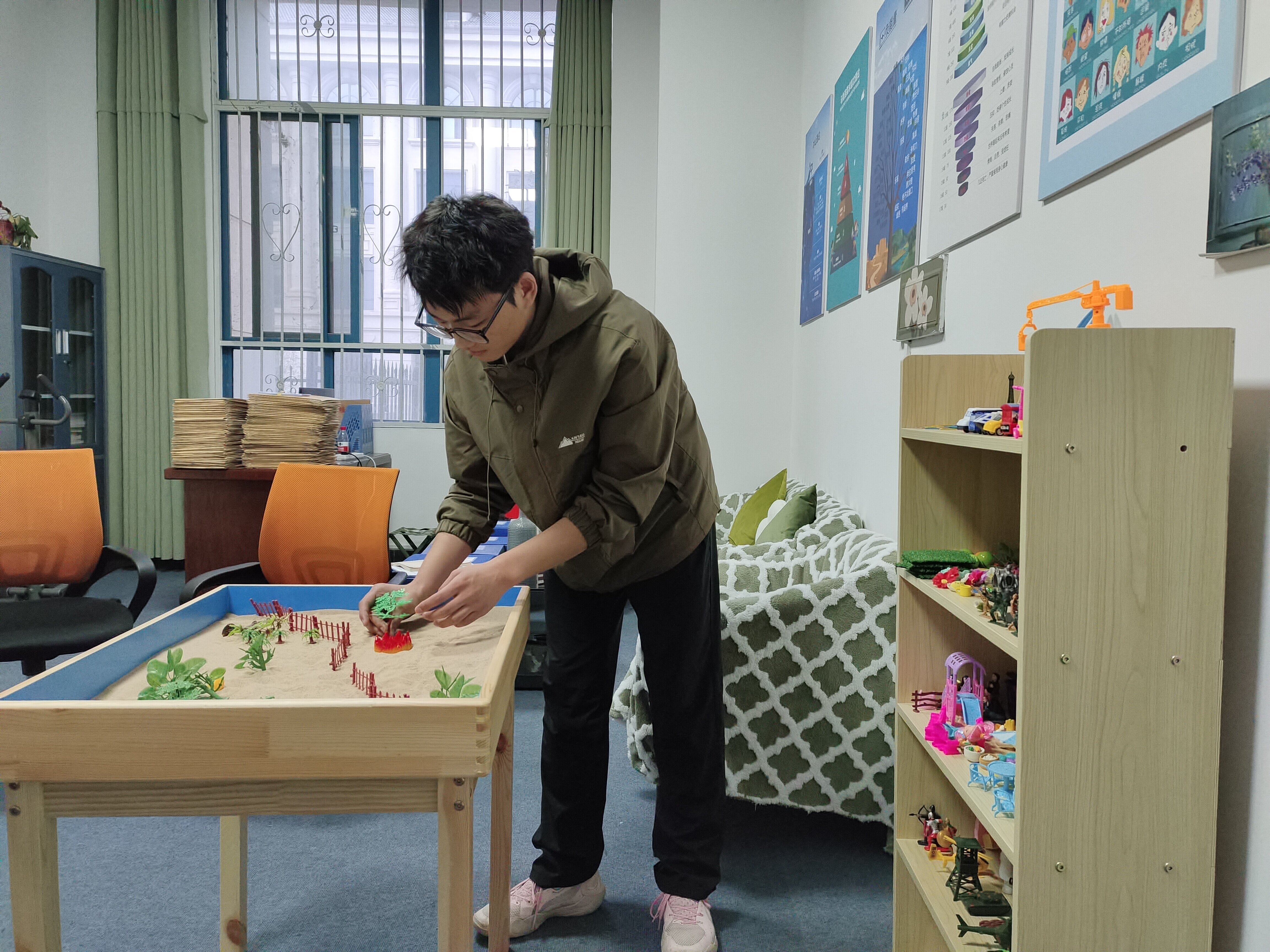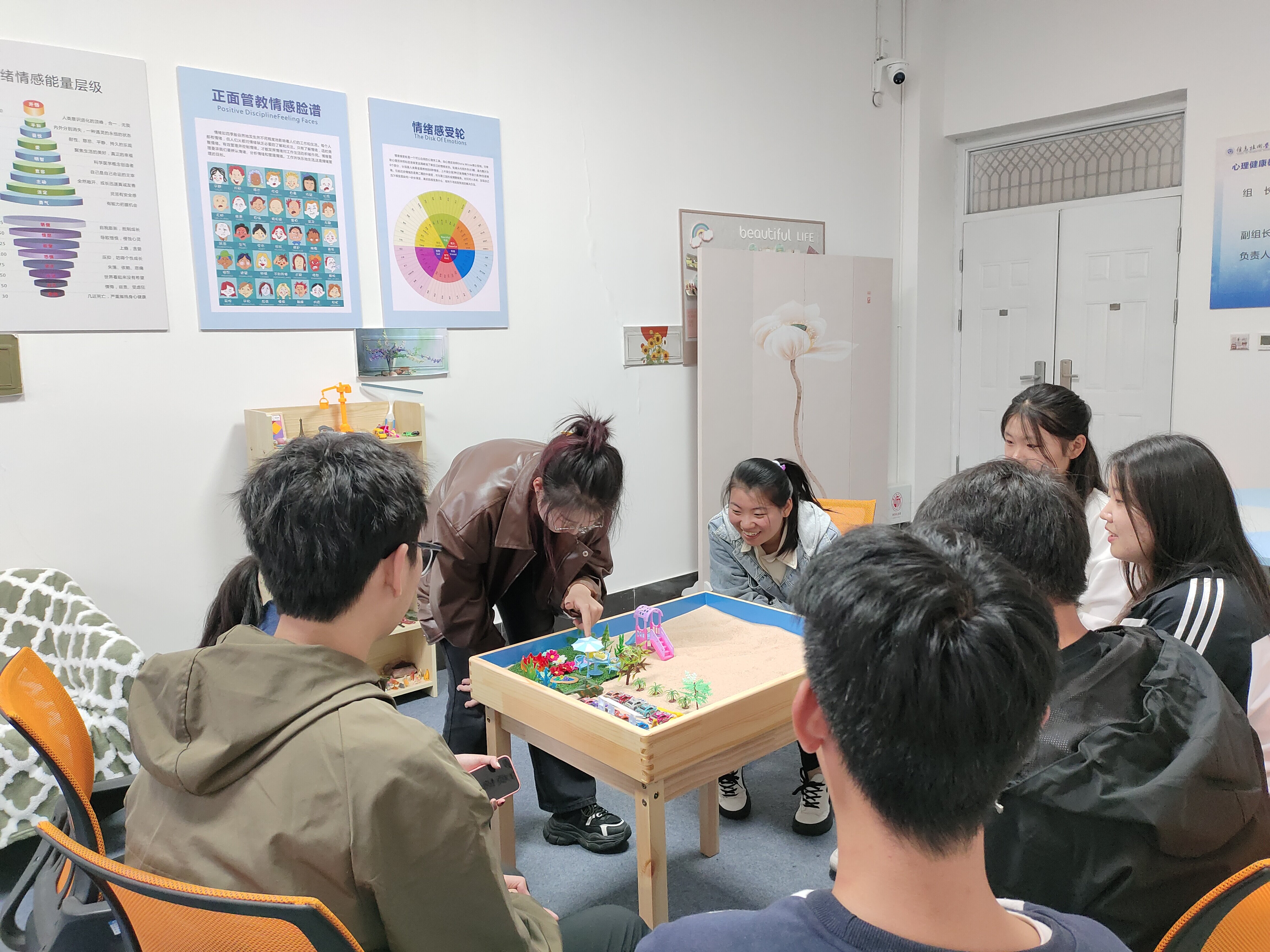 2023年10月27日,我院在三商南楼102心灵氧吧工作室开展“游沙润心,感知自我”团体沙盘心理辅导活动,23级13名心理委员参加活动。沙盘组织活动由吴楚主持开展。