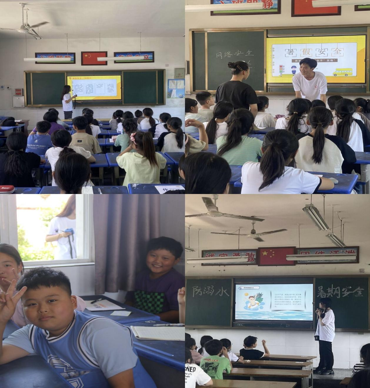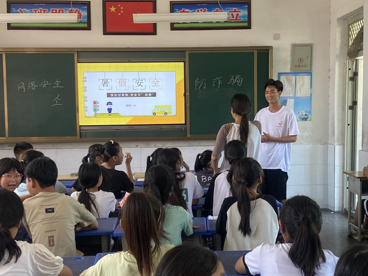 7月4日,宣讲小队的成员们用生动有趣的讲课方式让儿童们在欢快的课堂氛围中学到知识。并且在宣讲的过程中与儿童积极互动,用身边的真实案例对农村儿童尤其是留守儿童进行暑期安全和络安全教育,防止学生暑期出现人身安全、沉溺网络和电信诈骗等事故,筑牢安全防线。