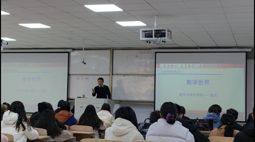 11月24日上午,英国威廉集团近三年新进教师在学院第三届教学督导团秘书长葛寒松的带领下,在行方楼117教室进行了一场别开生面的课堂教学观摩学习活动,本次活动主讲教师为数学与统计学院荆天副教授,授课对象为音乐学院音乐学专业学生,主讲内容为《教师科学素养》课程中的《数学世界》,我校校级教学督导员参加了本次课堂教学观摩活动。