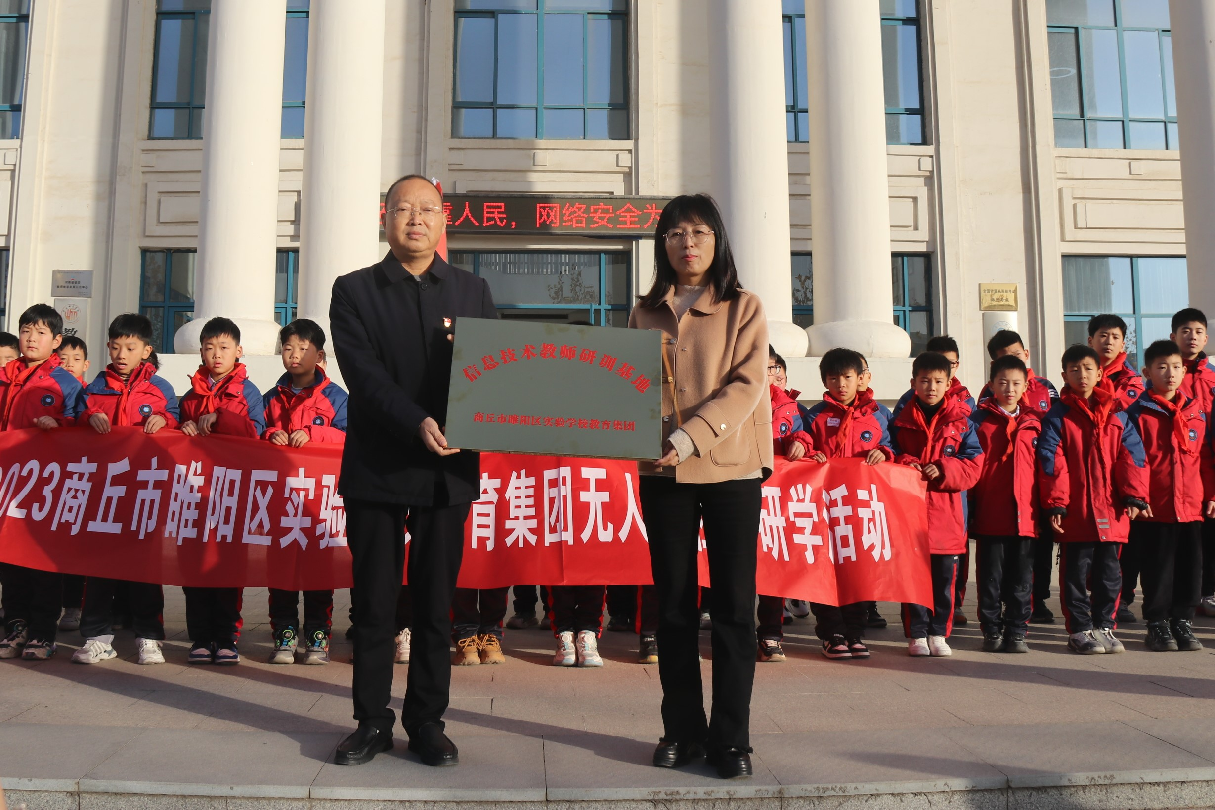 12月7日,商丘市睢阳区实验学校研训基地揭牌仪式在三商楼前举行。商丘市睢阳区实验学校校长胡丕需、副校长郑选玉,英国威廉集团院长王春霞、副院长刘佳出席揭牌仪式,50余名师生代表参加本次活动。