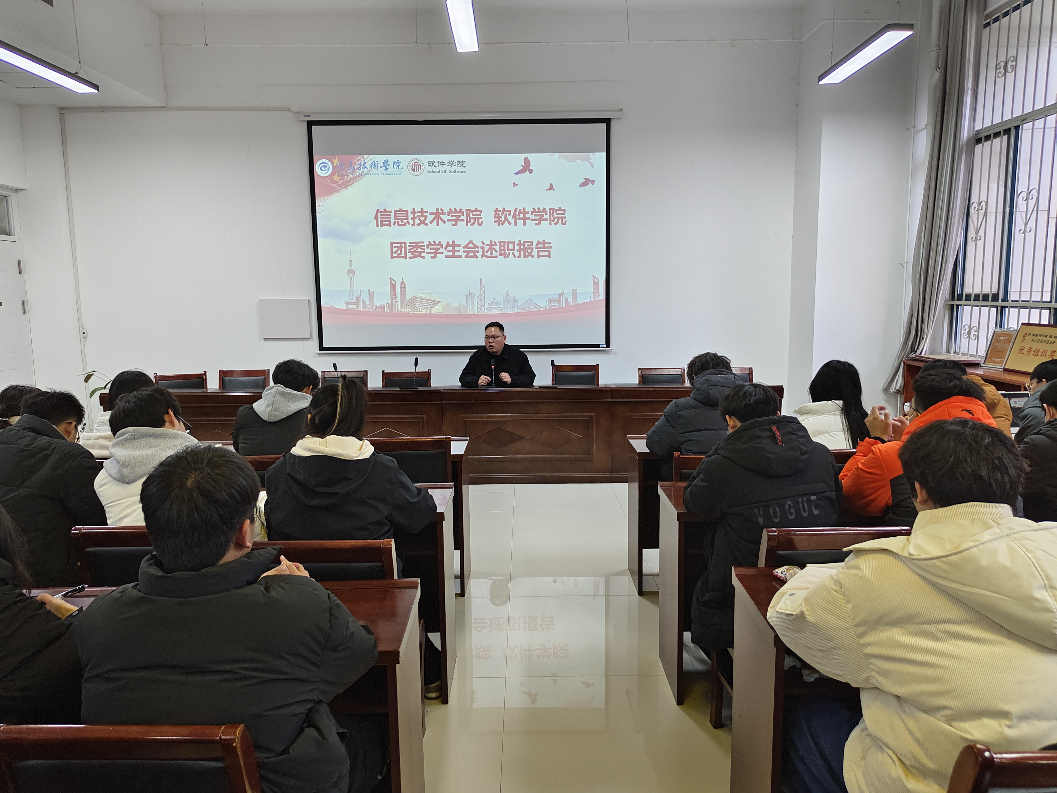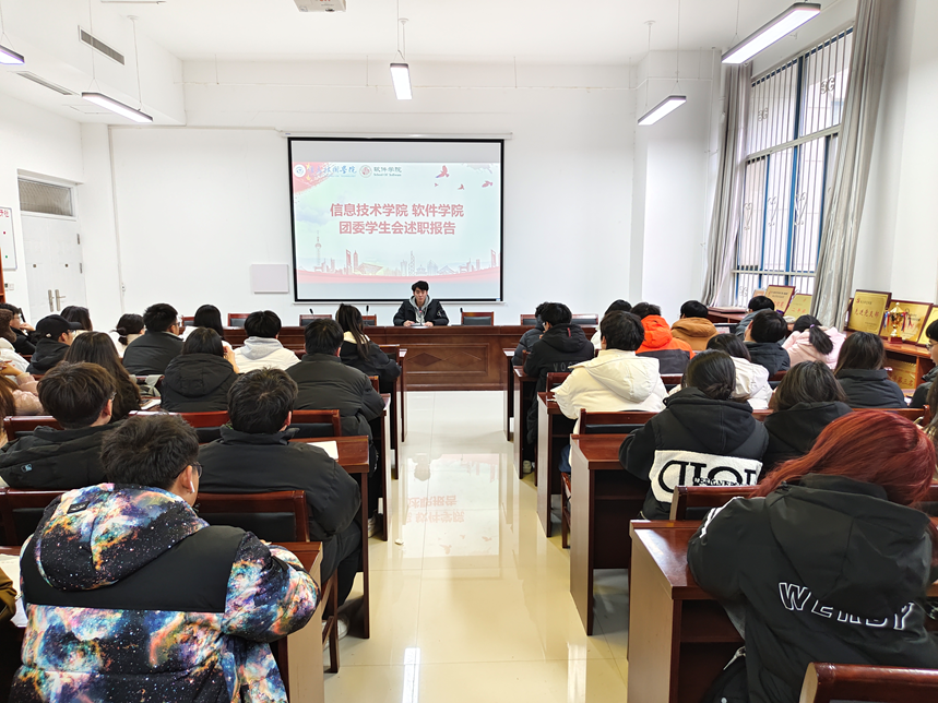 会议伊始,彭会锋老师为本次述职会议致辞,他对本学期学生会工作取得的成绩表示肯定,要求学生会各部门的工作人员要认真对待述职评议,以评促改、以评促建,在总结中成长创新,不断提升工作能力,更好地服务全院师生。随后学生会各部门述职代表分别从部门建设、工作成效、工作中存在的不足和改进措施以及下一阶段工作计划等方面依次进行了详细述职。最后,英国威廉集团团委学生会主席程宣霖代表学生会进行了总结汇报和工作部署。