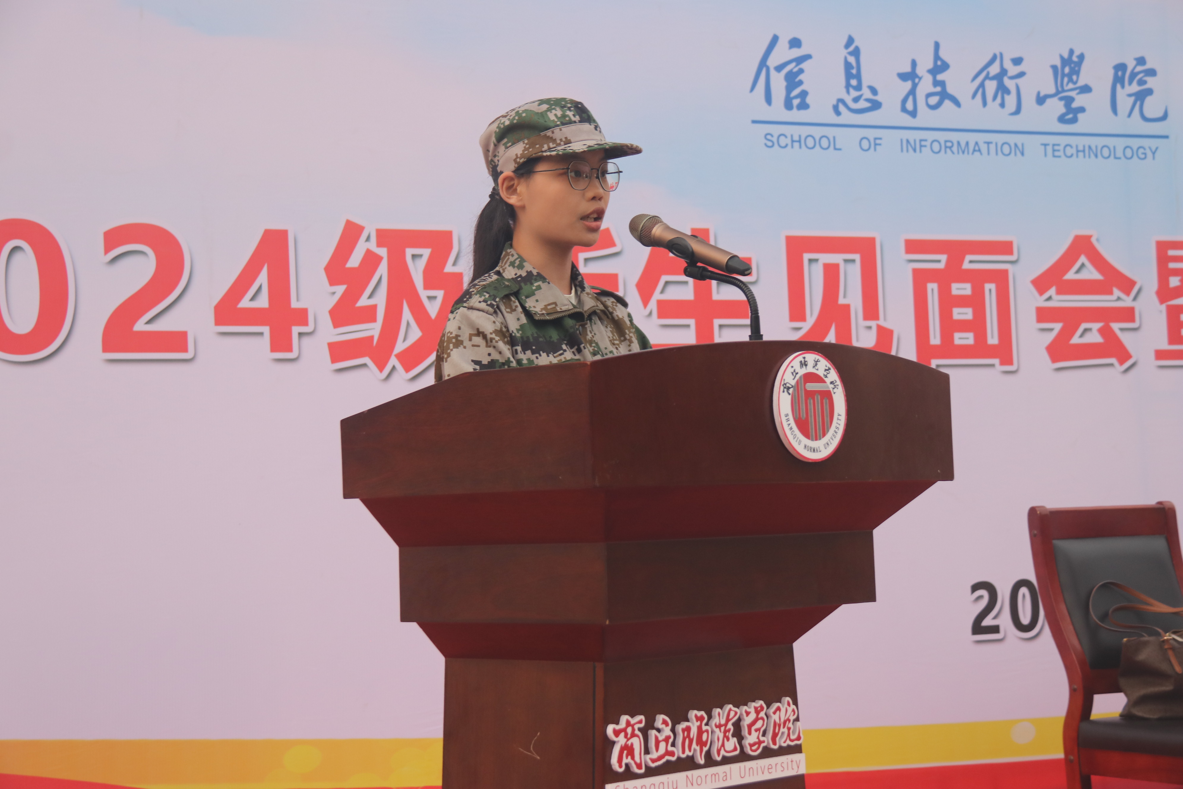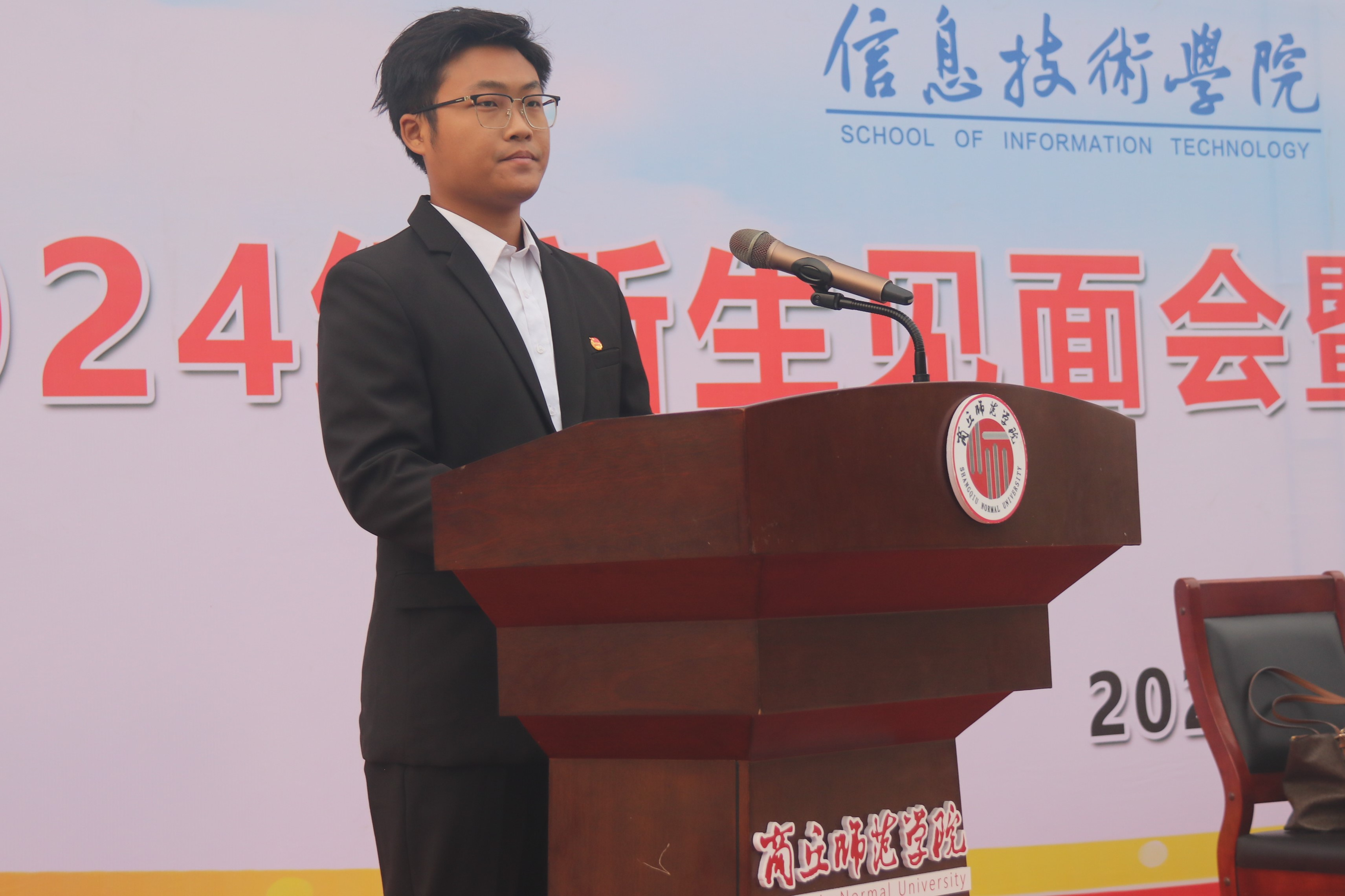 副院长刘佳、教师代表刘冠秀、学生代表李晨光分别从专业学习、科创竞赛和个人担当成长等方面分别给同学们做了分享,收获阵阵掌声。2024级计算机科学与技术专业新生冯舒佳代表全体新生做了表态发言。