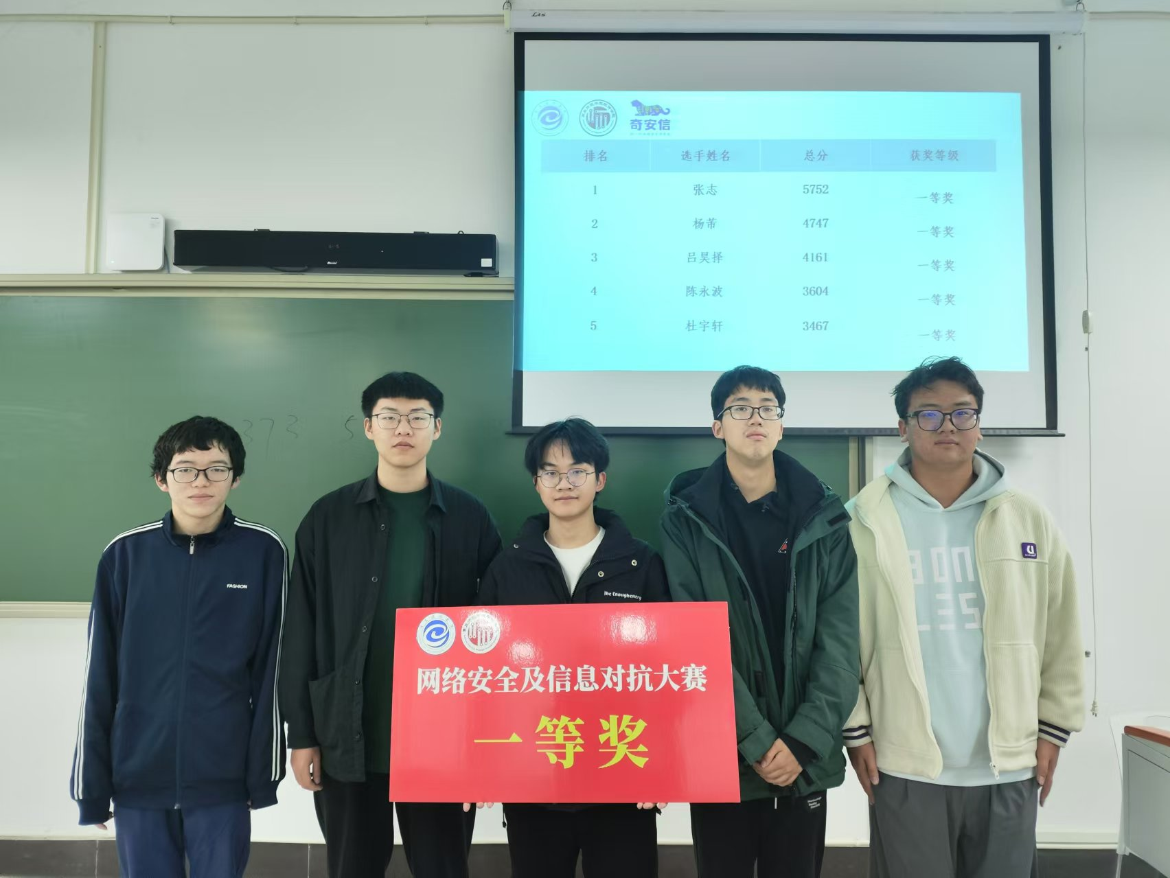 本次比赛共有148名同学报名,采用CTF解题赛制,比赛过程中,参赛选手展开激烈的电子对抗,在对战平台上相互PK夺得旗帜以敲定胜负,最终顺利地完成了整场比赛。最终产生一等奖5名、二等奖10名、三等奖20名,并发放了相应证书和奖品,张志、杨芾、吕昊择三位同学荣获前三名。