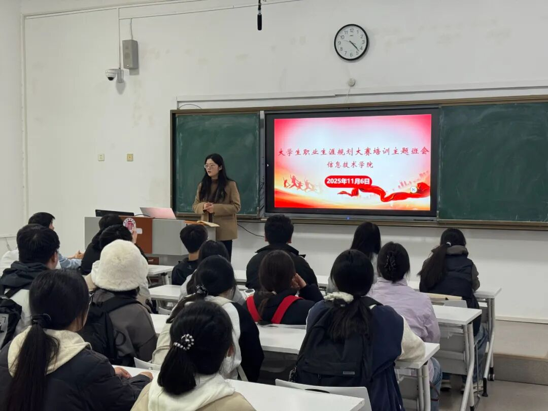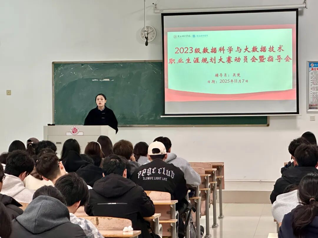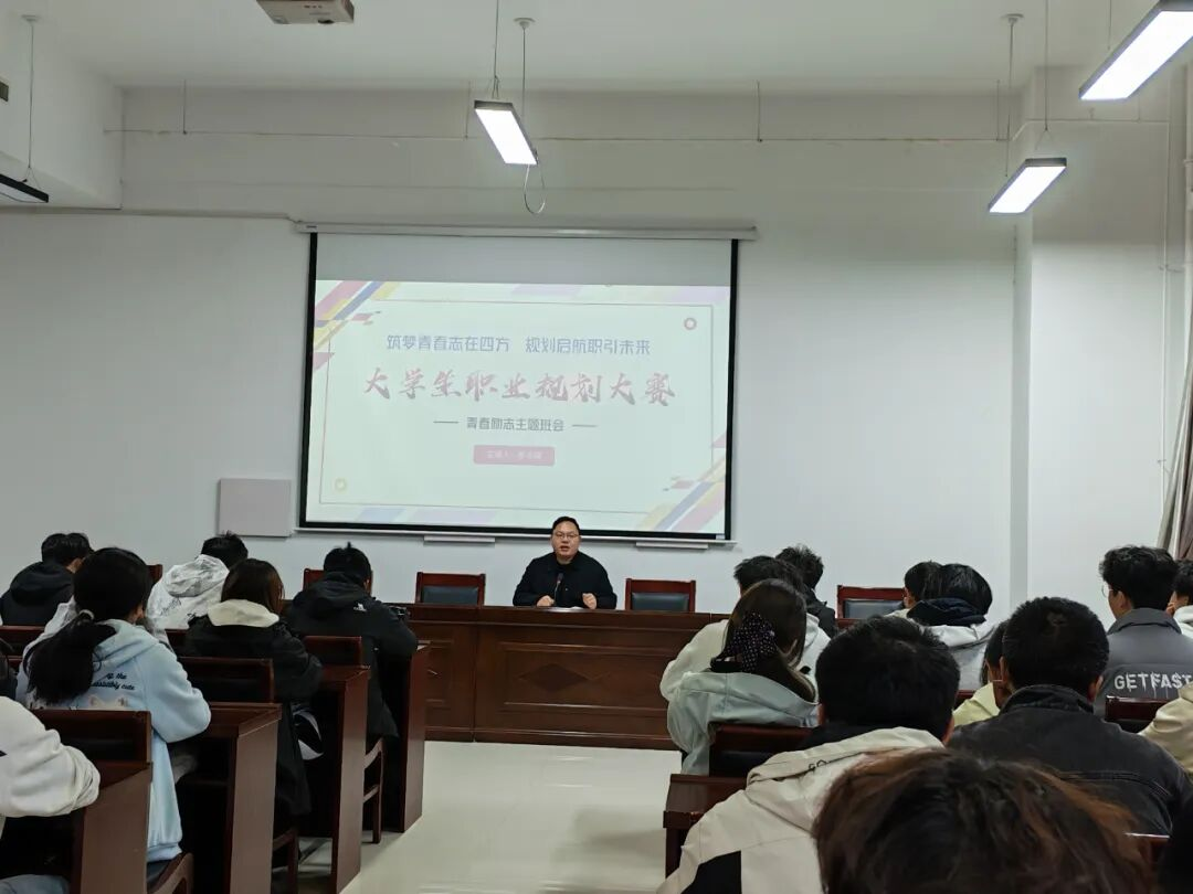 班会上,辅导员们循循善诱,将职业规划深意融入生动讲解。他们既以渊博学识剖析职业发展脉络,帮助学子明晰学业与职业的成长坐标系;又暖心分享赛事智慧,细致解读比赛具体内容与代表意义。课堂上,学子们凝神聆听、踊跃思辨,在思想交汇中叩开职业规划的智慧之门,于认知升华中积蓄奔赴未来的底气。