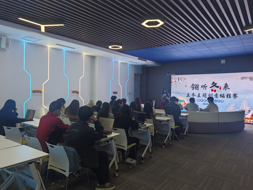 本次比赛以立冬节气文化为背景,旨在通过编程实践深入理解节气文化内涵,以数字化形式重构传统习俗的呈现方式。活动吸引了全校26支队伍、百余名同学同台竞技,展现了大家对编程技术的热爱以及对传统文化传承的责任担当。