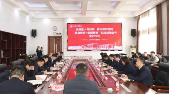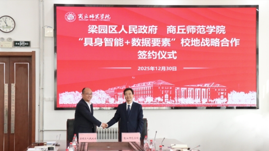 12月30日,我校与梁园区政府在梁园校区归德楼举行“具身智能+数据要素”校地战略合作签约仪式。校党委书记张尚字,校长陈向炜,副校长翟滨,商丘市人大常委会副主任、梁园区委书记张团结,梁园区委副书记、区政府区长魏宏志出席会议。我校有关职能部门,梁园区委、区人民政府,梁园区区直单位负责同志参加签约活动。翟滨主持会议。