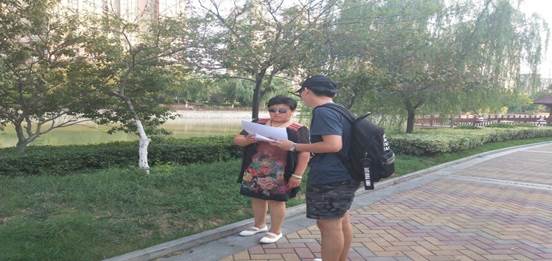 骄阳似火,但抵不过志愿者们的热情似火,志愿者们分成几组,在附近的几个公告栏张贴关于十九大八大民生看点和十九大调查问卷,同时对附近的人民群众进行讲解。