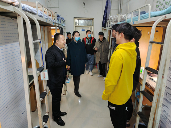 同时对各个宿舍的环境、卫生以及安全等方面进行了细致全面的查看,要求同学们要共同打造安全宿舍、文明宿舍、学习型宿舍,营造良好的宿舍氛围,同时亲切地询问了解同学们在日常生活学习中所遇到的问题,并及时给出了建议和解答。