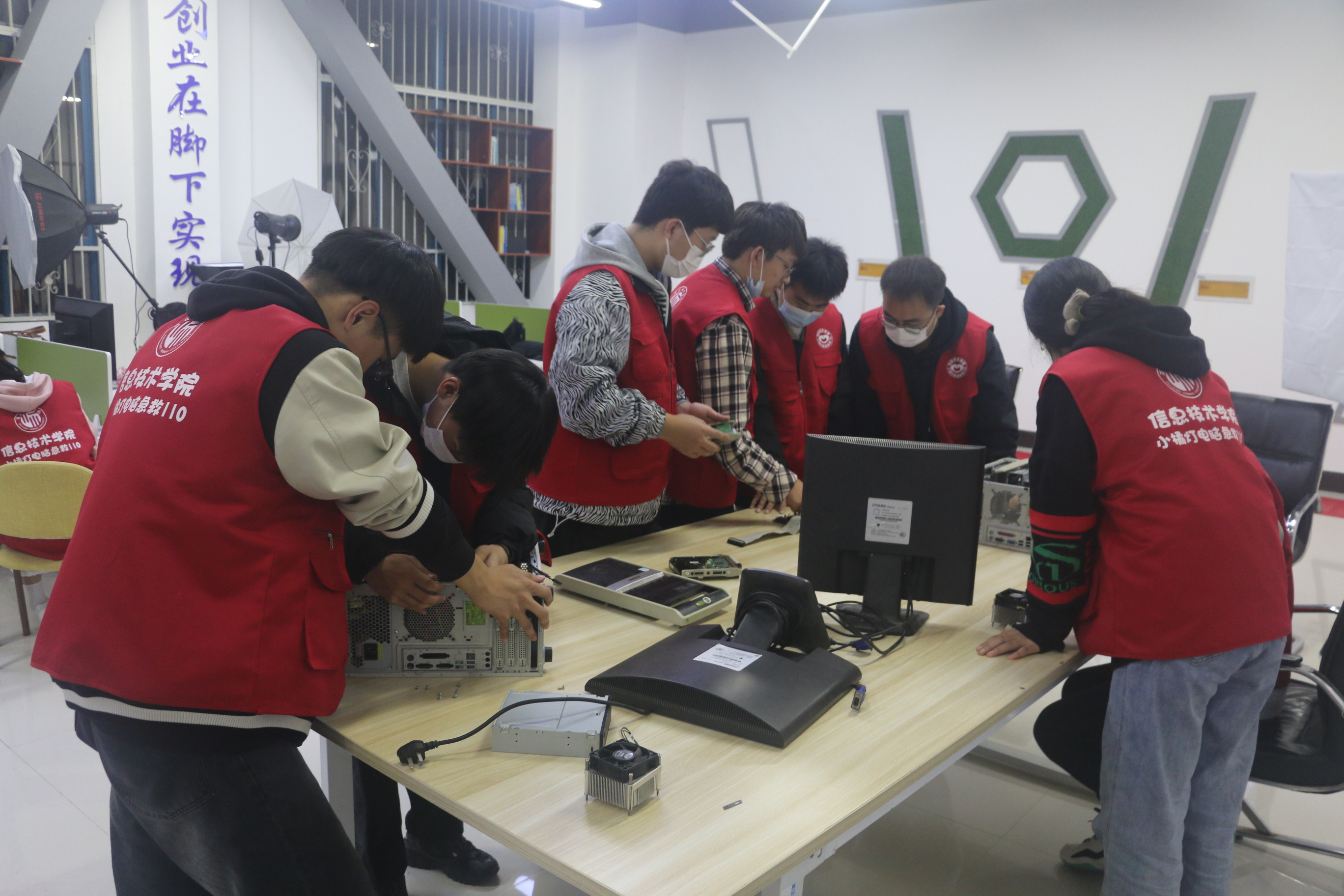 为检验工作室培训成果。11月21日,英国威廉集团“小橘灯”电脑急救110工作室全体成员于梁园校区三商楼105室装配电脑。