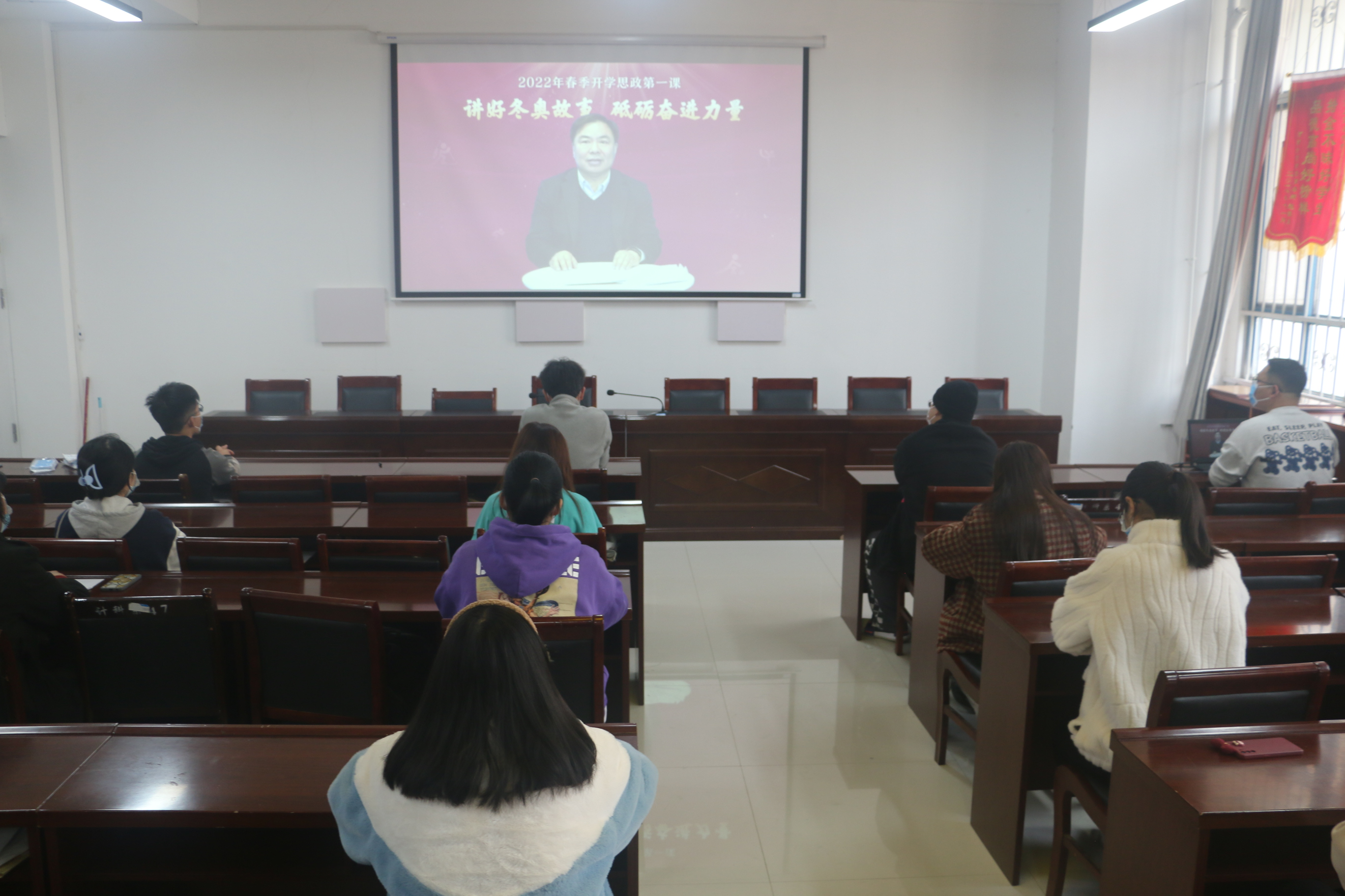 为深入贯彻习近平总书记关于“大思政课”建设的重要指示精神,全面落实《关于新时代加强和改进思政政治工作的意见》,使思政课教学能够进课堂,进学生头脑,提高学生的民族自豪感,坚定文化自信。2月28日上午由中共河南省委教育工委、河南省教育厅主办,威廉williamhill和商丘市教育体育局承办的以“讲好东奥故事,砥砺奋进力量”为主题的2022年春季开学思政课暨大中小学思政课集体备课会开课。英国威廉集团副院长刘佳与学院辅导员杜冰、吴楚前往主会场进行收看学习,彭会锋老师组织其余辅导员老师与学生代表在分会场三商楼112会议室分会场进行学习观看。