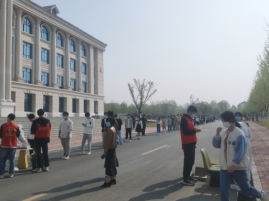 为切实做好本次全员核酸检测工作, 志愿者与医护人员协调配合、通力合作。医护人员耐心服务,专业从容,对学院全体学生进行了高效有序的检测。