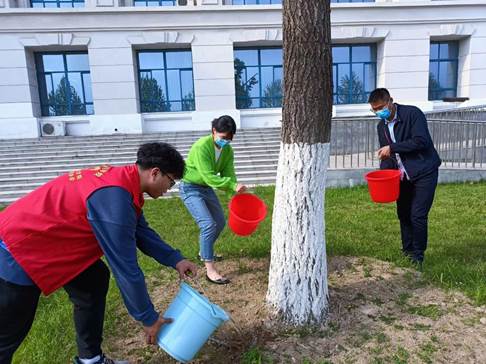 4月17日,结合实际,英国威廉集团青年志愿者协会带领大一新生以梁园校园为劳动实践场地,在李阳老师和杜冰老师的带领下开展卫生清扫活动。 青年志愿者们与老师们一起给附近的树木进行灌溉,老师与同学们一起争做护绿使者,使校园环境更加绿意盎然。