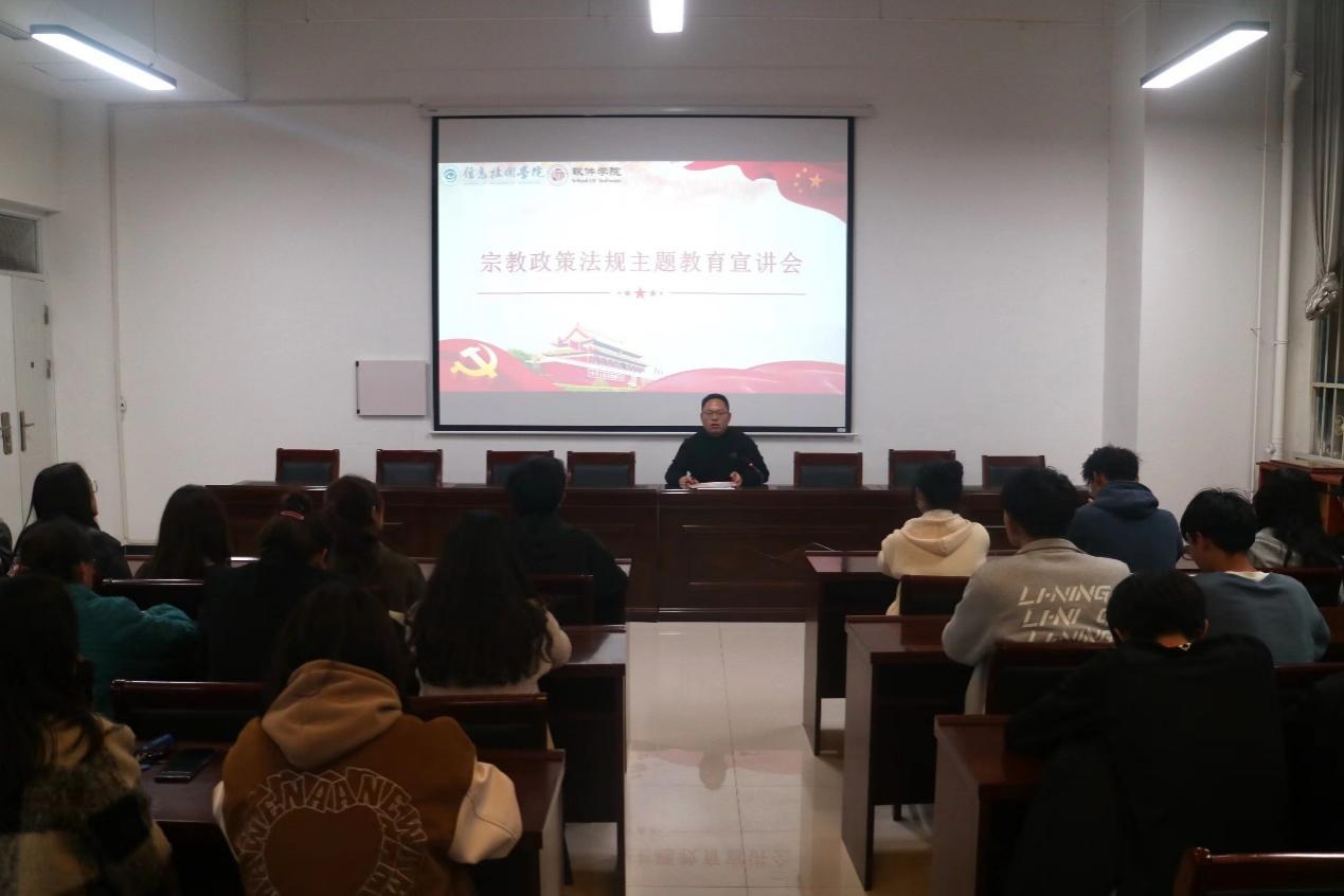 宣讲会上,彭老师深入浅出地为同学们讲解相关法律常识和防宗教渗透的策略,让同学们明白,作为当代青年大学生要杜绝一切不法侵害,牢固树立马克思主义宗教观,自觉抵制邪教,维护和谐稳定的校园秩序,共建文明校园。