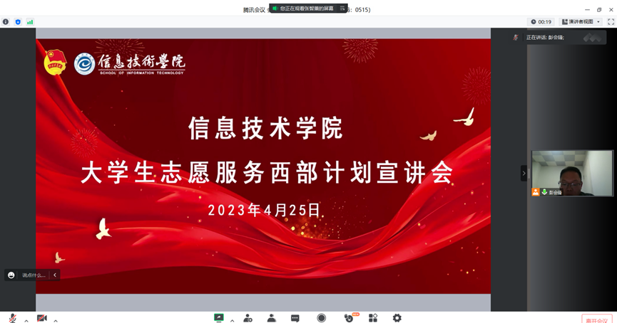 此次宣讲会的顺利开展,让同学们全面深入了解了西部计划,坚定了参与西部计划的信心,相信在随后的志愿服务当中定能展现出信息学子的青春风采。