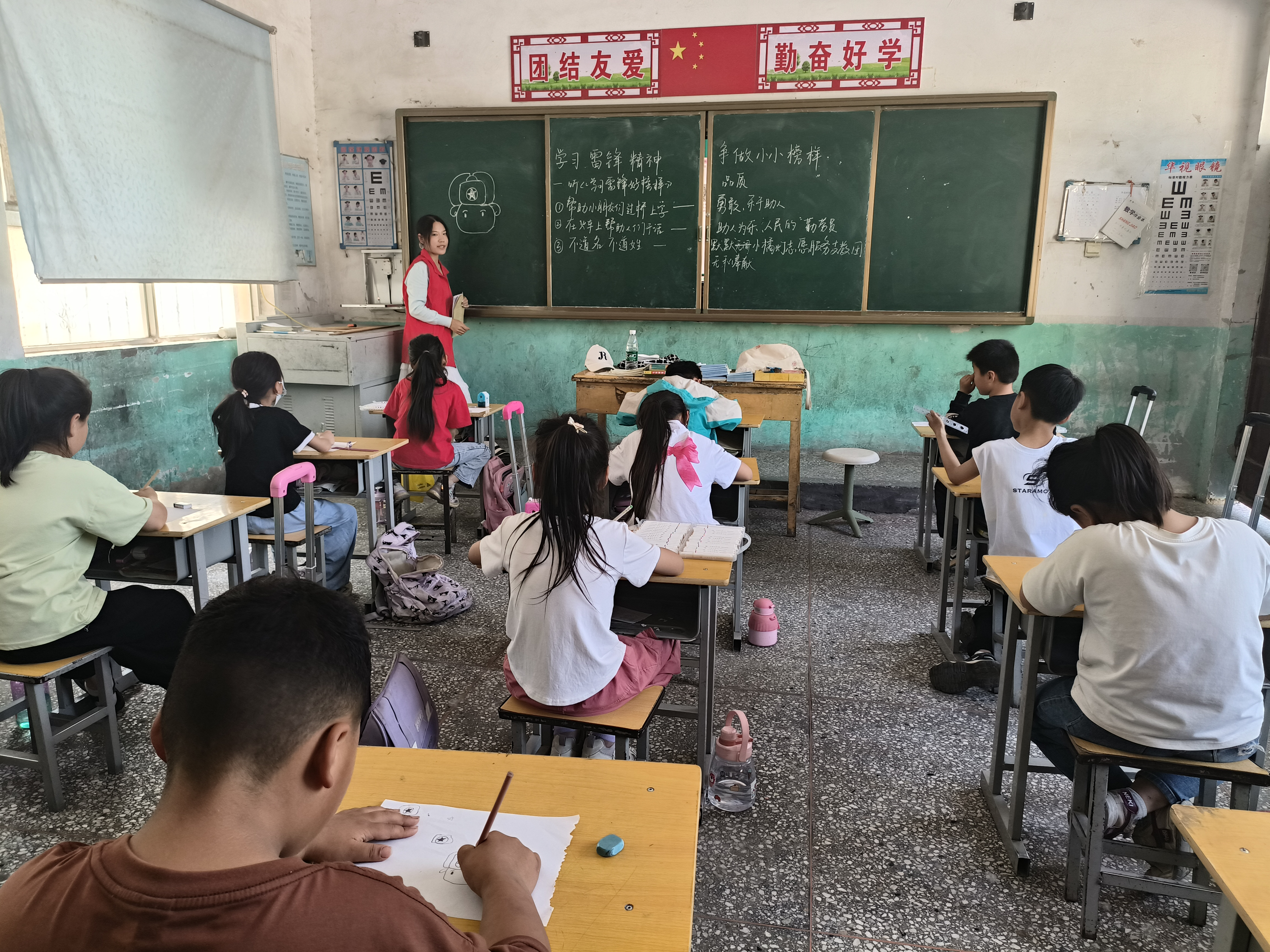 在大王庙小学支教过程中,志愿者们根据小朋友们的具体情况进行教学,通过教孩子们画画,学习书法以及基本的计算机知识,激发孩子们对外面世界的渴望,锻炼他们的学习能力。