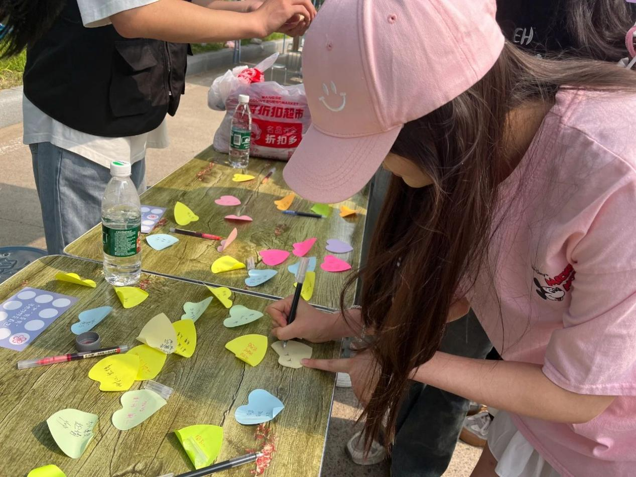 本次我院展位活动的主题为“闪闪发光的我”。活动中,学院志愿者们悉心为参与活动的同学们讲解活动规则。随后,参与同学认真思考,并按照活动规则在便利贴上写出自己3个闪光点,并将其贴在指定的展板上。这不仅帮助学生全面认识自我,发掘自身优点,更是提高同学们的自我接纳程度。我院党委副书记袁慧、学院心理健康工作专员吴楚及50余名学生代表参与活动,参与我院展位活动学生人数达600人/次。