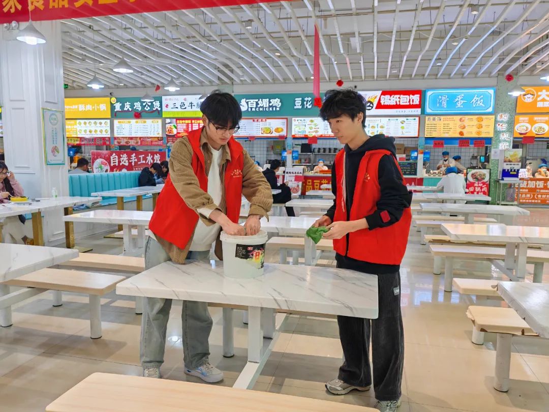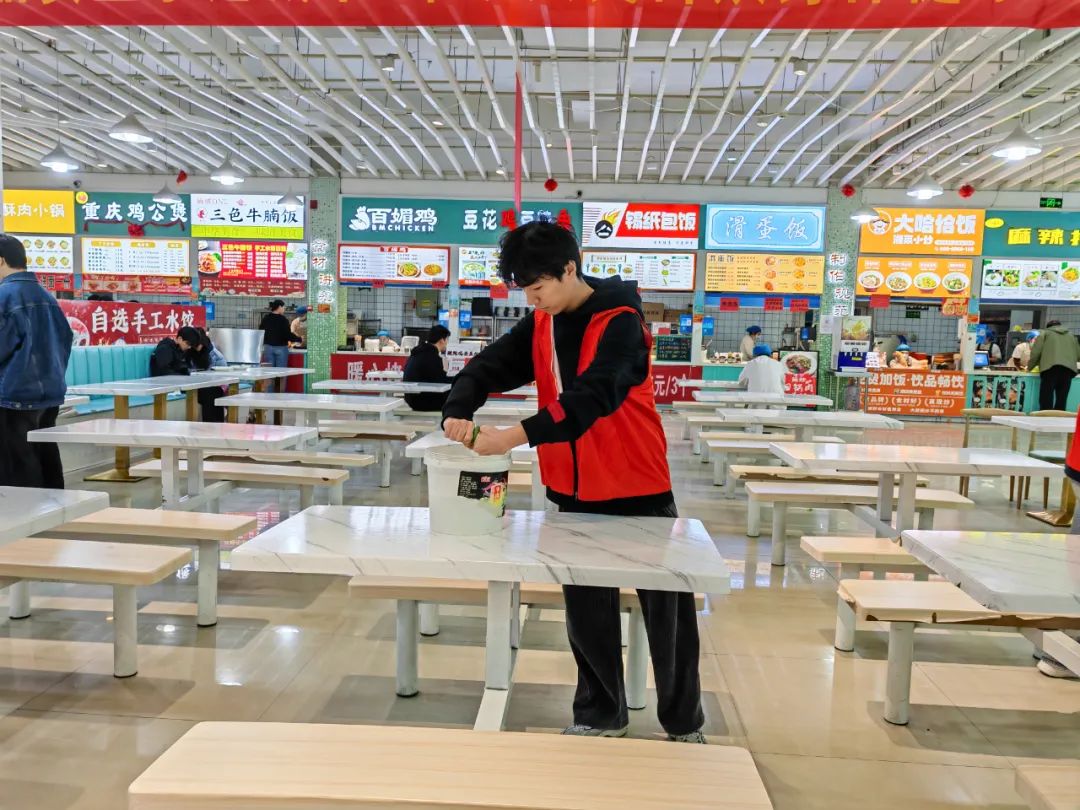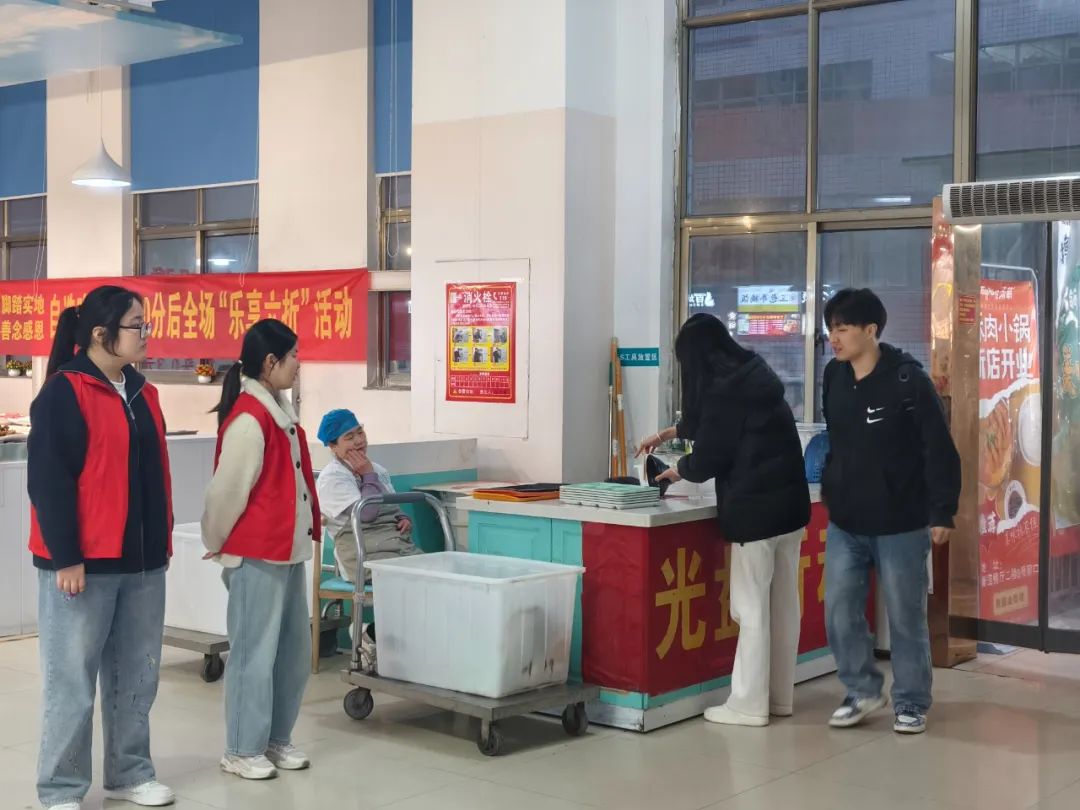 活动当天,志愿者们分工协作,深入餐厅各个角落。志愿者走进后厨,在专业厨师的指导下,学习食材清洗、切配和烹饪技巧,了解食品安全标准,参与厨房清洁和剩饭剩菜处理工作,亲身体验食堂工作人员的辛勤付出。通过悬挂醒目的横幅、张贴生动的海报,向过往同学宣传节约粮食的重要性并邀请同学们在横幅上签名承诺参与“光盘行动”,为积极参与的同学发放环保袋、笔记本等小礼品。