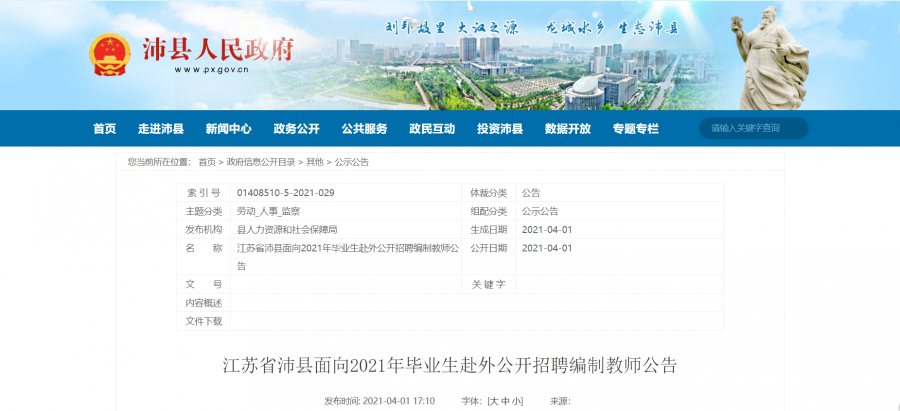 本公告由沛县人力资源和社会保障局、沛县教育局负责解释。