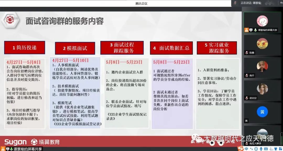 此次云端招聘会让应届毕业生了解到了当前大数据行业整体人才市场情况,也让他们获得了一定的面试技巧,通过主持人系统详细地描述和讲解,大家对未来职业有了新的规划和期待。
