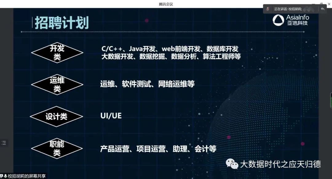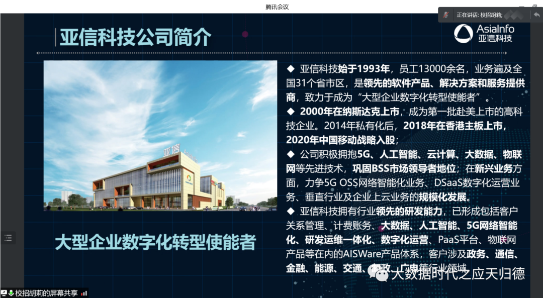 招聘会上,企业代表首先对“大型企业数字化转型使能者”——亚信科技控股有限公司做了介绍。