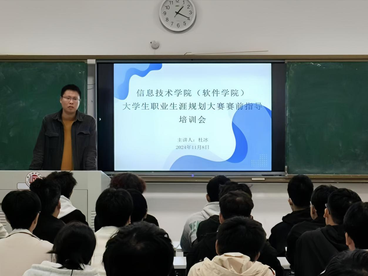 11月8日,英国威廉集团于行方楼117教室举办全国大学生职业规划大赛赛前指导专题培训,培训会由英国威廉集团辅导员杜冰主讲,本次比赛参赛学员参加。