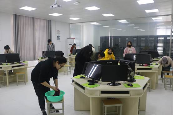 党总支副书记路利首先对此次义务活动进行了任务分配。在辅导员张瑞、戴艳、李阳的带队下,党员和入党积极分子迅速到达指定地点。随后,各小组分工合作,认真清扫机房和实验室,并重点对一些卫生死角进行集中清理。同学们以主人翁的态度,用心打理自己的学习活动场所。最后,机房和实验室焕然一新。