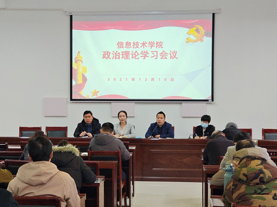 会议第二阶段,王国华首先梳理了学院师生近期的政治理论学习情况,要求大家继续加强学习,不断学习,终身学习。随后,王国华带领全体教职员工共学习领会党的十九届六中全会精神,并对相关内容进行详细阐述,同时要求大家要不断学习先进的思想政治理论,提升党性修养,更要理论联系实际,提升自身工作水平,要始终坚持以人民为中心,以学生为中心,从实际出发,为中华民族的伟大复兴贡献自己的力量。