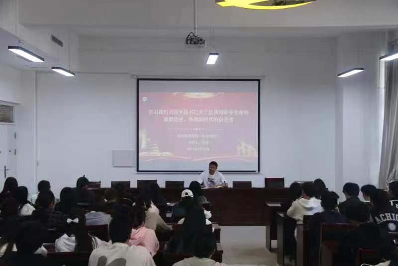 吴楚从“一个观念”“一部法律”“一个节日”“一个使命”等内容入手,围绕国家安全和保密工作面临的复杂形势,结合平时工作生活中的点滴和详实的案例,为全体学员讲解了国家安全和保密工作的重要性以及泄密带来的危害和严重后果。 杜冰从大学生在维护国家安全的权利和义务,总体国家安全观与大学生的关系,以及如何维护国家安全等对总体国家安全观进行了深刻阐释和详细解读。他强调要坚持以习近平新时代中国特色社会主义思想为指导,全面深入贯彻总体国家安全观,坚决筑牢国家安全防线。