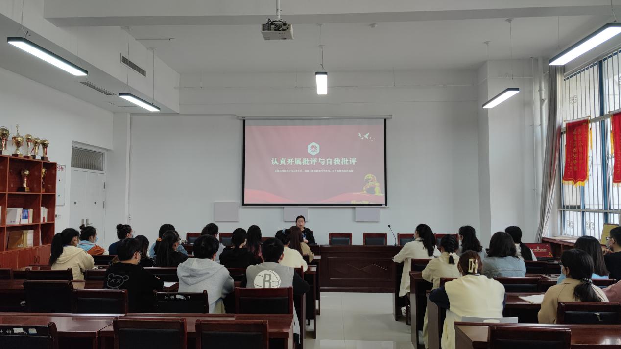 紧接着,戴艳针对会议开展情况进行了总结和点评。她首先对这次会议的流程的规范性和同学们表现的积极性做出了肯定,同时也指出了不足之处,对年度支部会议主题的把握高度不够高,深度不够深,并针对会议主题要求做了详细的讲解。她还结合生活会主题为大家讲解,如何增强“四个意识”,怎样坚定“四个自信”,以及内心如何做到真正的“两个维护”。随后戴艳强调,作为一名党员要把思想和行动统一到党中央重大决策部署上来,以优异成绩迎接党的二十大胜利召开。