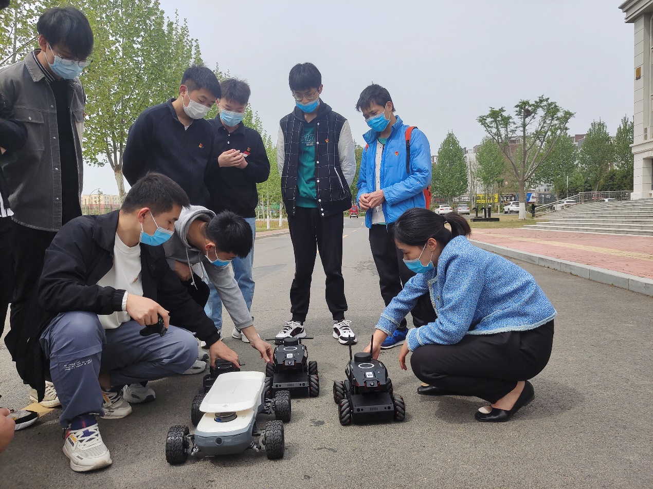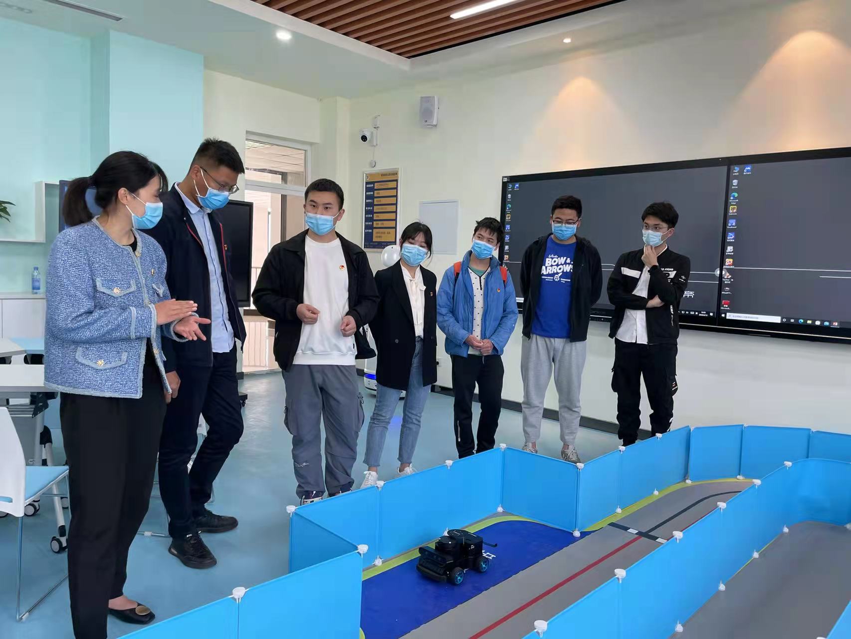 首先,李阳向学生们讲述了河南省“十大战略”的主要内容,并对其中的创新驱动战略和乡村振兴战略做出更加细致的讲解。讲解完毕之后,王金成同学拿出智能小车,向同学们演示了智能小车的前进,后退,转弯,加速等特性。随后,王金成向大家耐心讲解了智能小车的具体构成以及驱动小车所需要的算法,并引导大家亲手操纵智能小车进行进一步的体验。