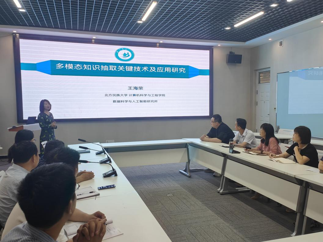 会议首先由王教授分享学术报告,主题是多模态知识抽取关键技术与应用研究。针对什么是多模态数据、多模态知识与数据间的关系、多模态知识抽取的关键技术、多模态知识图谱及在人工智能领域的应用等问题,王教授进行了较为全面的介绍。报告深入浅出,聚焦学术前沿,对如何从多模态数据中抽取具有相同语义的知识总结了有力的技术方案,让参会师生从精彩的报告内容中获取了技术知识、拓宽了研究视野。