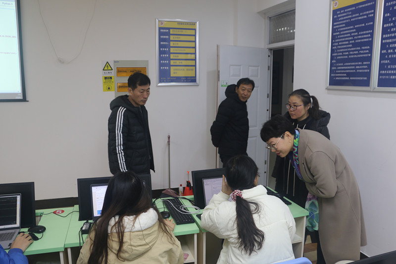 检查中,实训实验室学习气氛浓厚,学生们积极完成实训内容。张辉书记与菅典兵院长对学生们的学习态度表示赞许并就学习情况进行了解与指导。他表示,希望同学们能够明确自己的目标和计划,将专业理论知识与实践相结合,在学习的过程中借鉴他人优点,学会取长补短。学生们听后纷纷表示会认真完成实训课程,保证认真对待每一个项目。