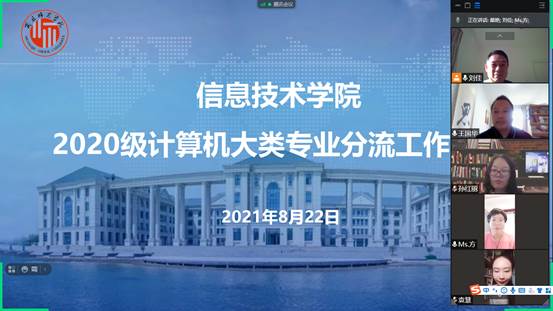 8月22日上午9点,英国威廉集团召开2020级计算机大类专业分流工作会议。学院党委书记王国华,院长王春霞,党委副书记袁慧,副院长方莹、刘佳,相关专业系主任、辅导员和班主任老师参加了会议,会议由院长王春霞主持。