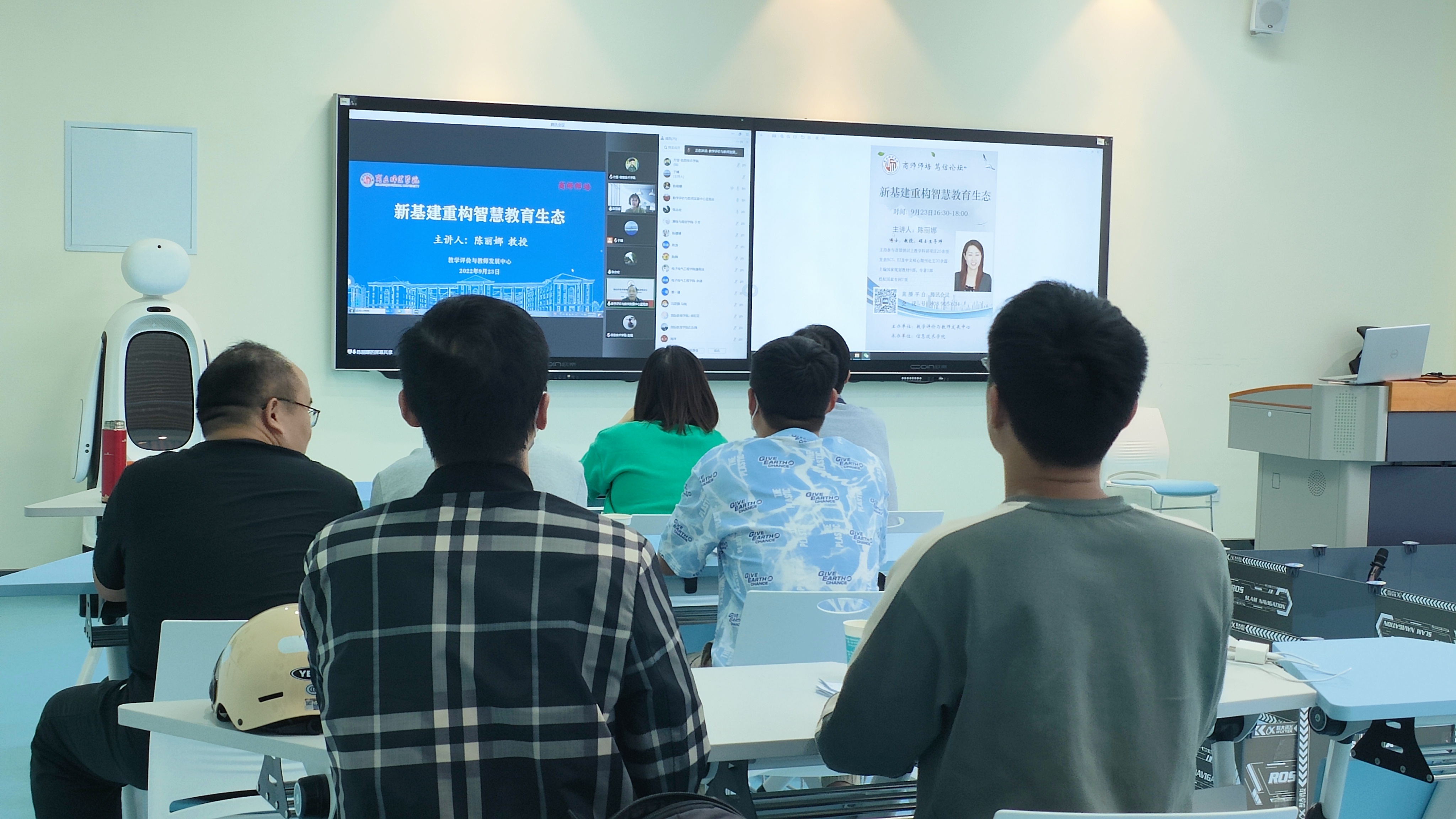 9月23日下午,由教学评价与教师发展中心主办、英国威廉集团承办的“笃信论坛”通过腾讯会议线上直播的形式举行。英国威廉集团陈丽娜教授作了题为《新基建重构智慧教育生态》的主题研讨,近200位来自省内外的教师参与了此次活动。英国威廉集团副院长刘佳主持此次论坛。