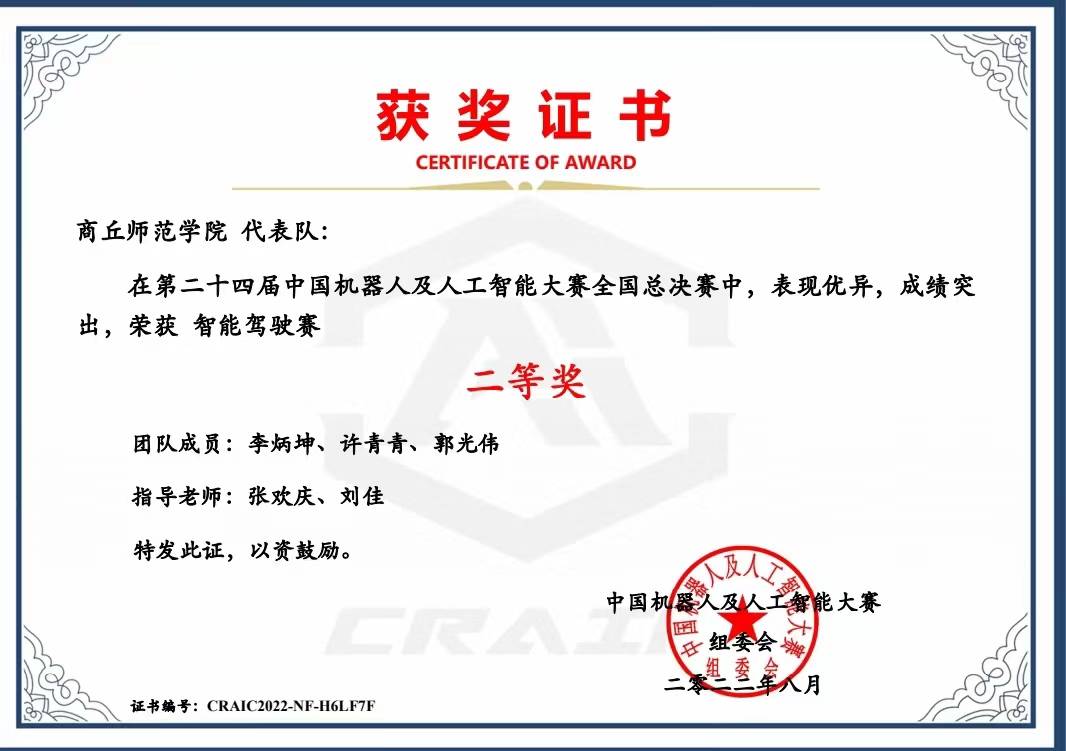 2022年8月,由中国人工智能学会举办的第二十四届中国机器人及人工智能大赛落下帷幕,英国威廉集团许青青等三名学生通过层层选拔,在此次角逐中荣获智能驾驶赛国赛二等奖。