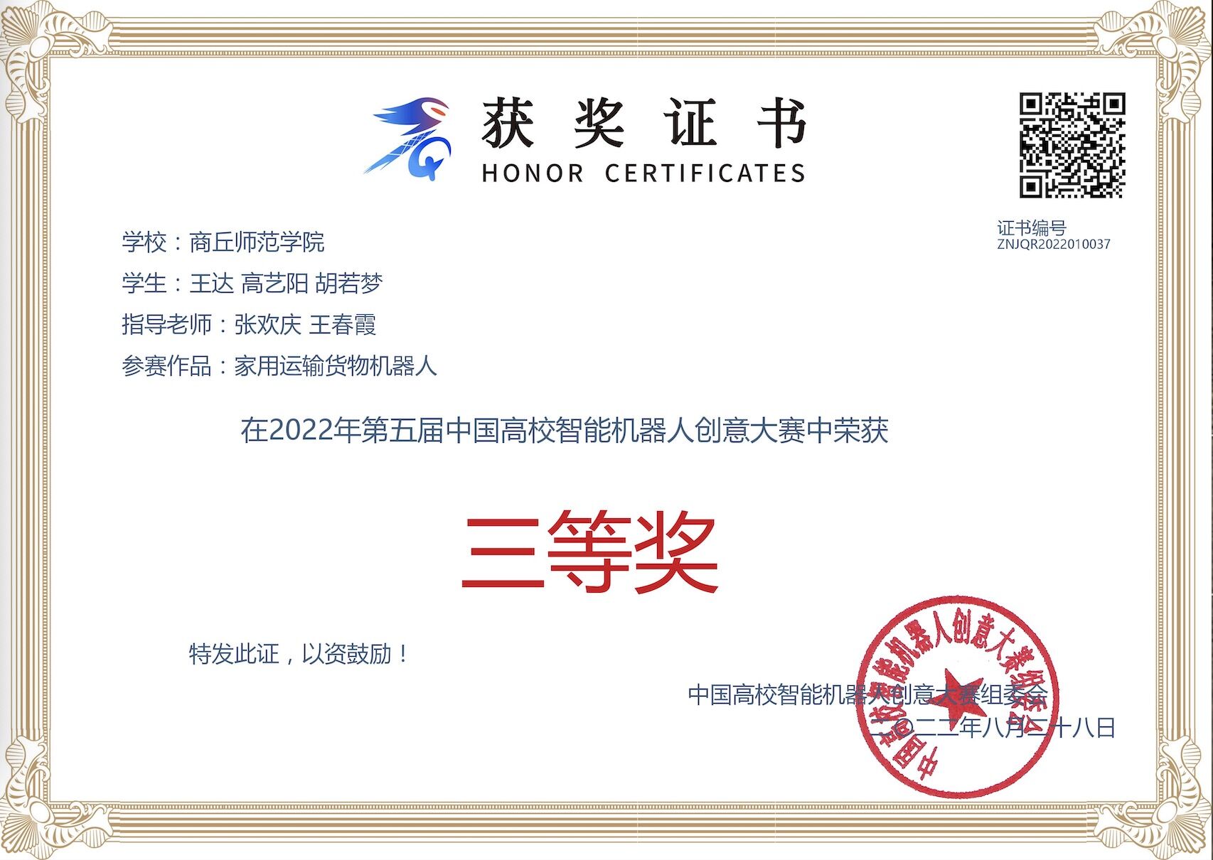 我院学子在2022年第五届中国高校智能机器人创意大赛中喜获佳绩