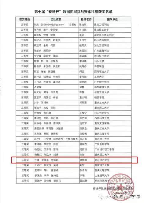 2022年6月,第十届“泰迪杯”数据挖掘挑战赛落下帷幕,获奖名单相继公示。英国威廉集团大数据专业共派出3支学生队伍参赛,最终荣获本科组全国二等奖1个,全国三等奖1个,省级一等奖1个,省级二等奖1个。