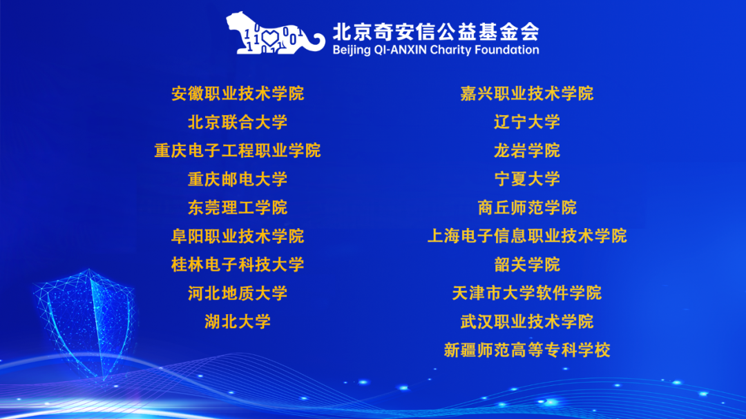 奇安信基金会自2022年发起“心安助学·高校教育助学项目”以来,通过为网络安全相关专业困难学生提供紧急救助金、社会学习实践支持金和奖助学金的方式,已累计资助各类高校32所近500名学生,累计资助金额达880万元。启动会上,奇安信基金会强调了“心安助学·高校教育助学项目”的全新定位及发展目标,并公布本年度19所资助高校名单。