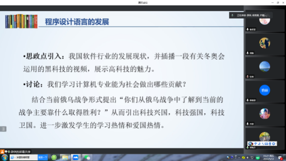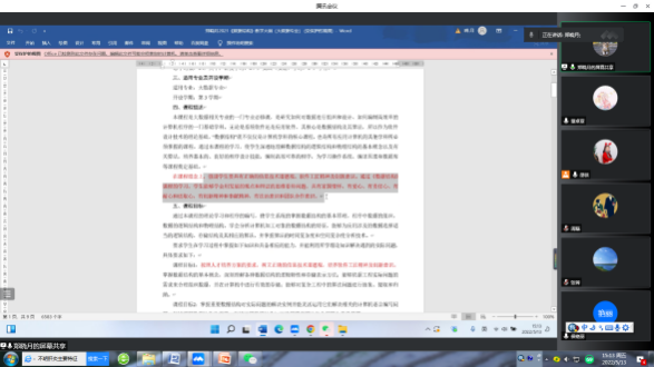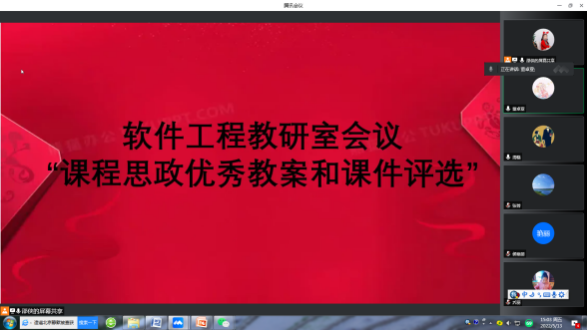 513日下午,软件工程系根据学院教研活动统一安排,举行了本学期课程思政优秀教案和课件评选活动,会议借助于腾讯会议采用线上形式进行,教研室全体老师参与了本次活动。