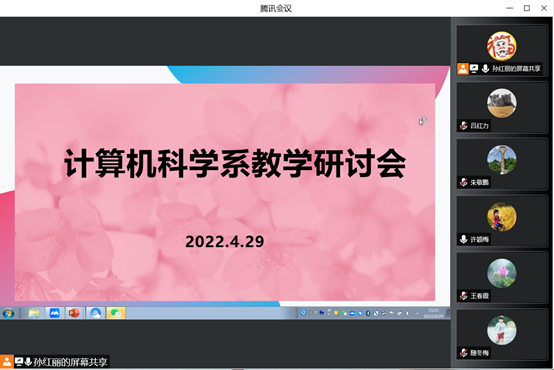 4月29日下午3点20分,计算机科学系采用腾讯会议平台开展主题为积极开展课程思政建设,促进课堂教学质量提升的教研会议,会议由系主任孙红丽主持。